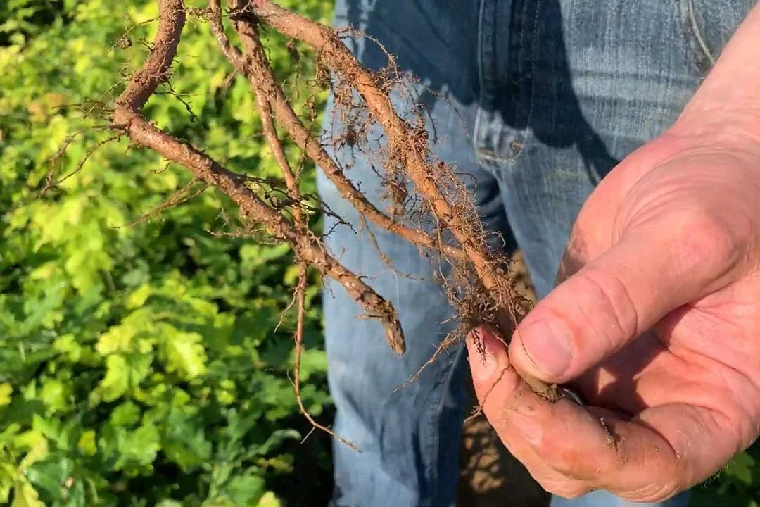 All of our taprooted species are undercut early in the growing season. This process breaks taproot dominance and forces the plant to take the energy produced by the shoot and use it to grow significantly more lateral roots in the first 8” of the root system, which ultimately, is what ends up in the planting hole. More lateral roots in the planting hole result in significantly higher survival rates and increased growth. See a video about our process here.